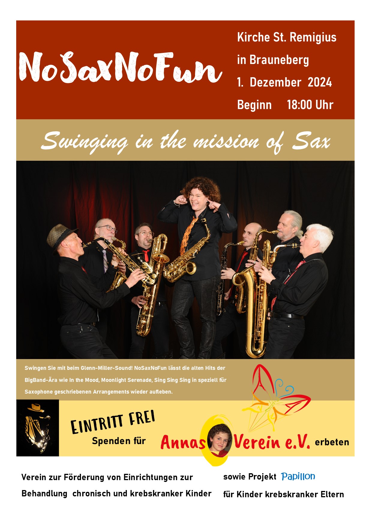 Konzert von NoSaxNoFun am 01. Dezember um 18:00 Uhr in der Kirche St. Remigius in Brauneberg