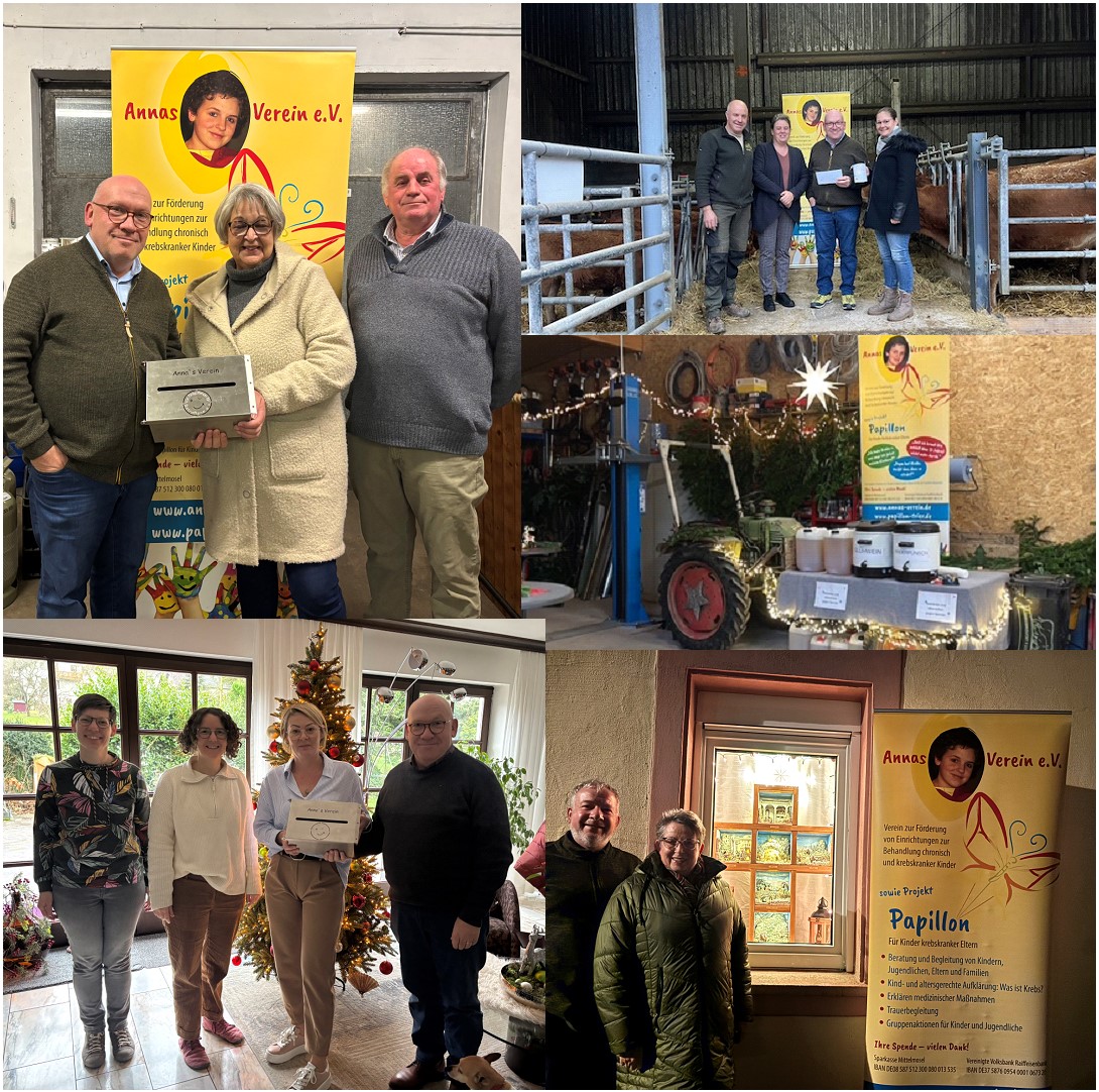 In der Adventszeit durften wir viele wunderbare, weihnachtliche Spenden und Aktionen erleben: Dank einer Waffel-, Punsch- und Plätzchenaktion vor dem Klinikum Mutterhaus kamen mit großartigem ehrenamtlichem Einsatz 750 € für Papillon zusammen. Ein herzliches Dankeschön an Birgit und Ute! Auch in diesem Jahr erhielten wir wieder eine großzügige Schokoladenspende von Ulla Wendland und Werner Marginet, liebevolle Mutmacht-Post für unsere Familien von Yvonne Bohrer und Theaterkarten für das Weihnachtsmärchen am Theater Trier von JTI. Von Herzen danken wir allen UnterstützerInnen für diese wertvollen Beiträge, die unseren Papillon-Familien schöne Momente und kleine Auszeiten in der Weihnachtszeit geschenkt haben.