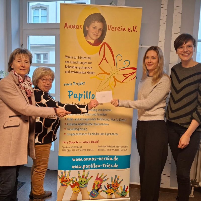 Seit fast 20 Jahren ist es das Anliegen des Lions-Clubs Trier und des Lions-Clubs Trier-Basilika, mit dem gemeinsamen Trierer Adventskalender Licht in die Adventszeit zu bringen und zugleich Sozialprojekte zu unterstützen. Dieses Jahr durften wir als eine von vier begünstigten Institutionen eine Spende in Höhe von rund 6000€ entgegennehmen. Wir bedanken uns von Herzen für diese großartige Unterstützung und die Wertschätzung unserer Arbeit.